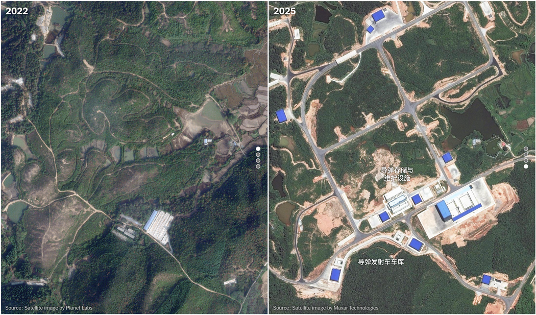 中国正在把东海岸的部分地区改造成对台湾及其附近水域进行潜在导弹打击的平台。这是对实现中国领导人习近平的目标至关重要的准备工作的一部分,习近平志在收复台湾,并想以压倒性力量的威胁来对抗美国在亚洲的影响力。据美国国防部估计,掌控中国核导弹和常规导弹的火箭军已在四年里增加了近50%的武器储备,让导弹数量达到了约3500枚。虽然尚不清楚目前有多少枚导弹部署在东海岸,并以台湾为目标,但卫星图像显示,火箭军的导弹旅近年来已建造了新的、更大的基地,还建了更多的发射台。越来越先进的导弹正在这些基地部署,例如机动性更强、更难拦截的高超音速导弹东风-17,以及被一些中国人昵称“关岛快递”的东风-26,研究人员称后者具有打击关岛美军基地的能力。中国军队一直在东部沿海地区进行导弹发射训练,发射地点包括农田、隐蔽的山谷、高速公路附近,还有一些沿海露头地带,直接面对隔着160公里海峡的台湾。 导弹“确实是中国将对台湾使用的任何军事胁迫行动的起点”,华盛顿研究机构国防重点的高级研究员詹妮弗·卡瓦纳说。“我认为,对中国来说,拥有压倒性数量的导弹也是意在发出一个政治信号,对台湾来说,这个信号是‘反抗是徒劳的’,对美国来说是不能干预。”一旦开战,中国的导弹将对摧毁台湾的防御系统至关重要,也对美国在关岛和日本的基地构成威胁,还会让美国派去支援台湾的海军舰艇成为打击目标。在和平时期,中国用导弹试射、演习和展示来投射力量,以图恐吓台湾及其盟友。 今年9月初在北京举行的阅兵式是最近的一次军力展示,中国在阅兵式上展示了一系列新型导弹。阅兵式上还展示了似乎具有高超音速能力的新型反舰导弹,以及洲际核导弹。“火箭军是中国军队王冠上的宝石,”美国海军退役军官、现就职于新美国安全中心的托马斯·舒加特说。“它极大地扩大了中国在几乎没有任何警告的情况下突然出击的范围。”腐败丑闻和领导层动荡最近已严重损害了火箭军。但习近平去年在安徽省视察火箭军611旅时表达了他对该军种的支持。中国人民解放军针对台湾和西太平洋的兵力集中在这个东部省份。中国国家电视台报道这次视察时播放了习近平观看部队模拟准备机动导弹发射的画面。他要求部队“强化忧患意识、危机意识、打仗意识”。 不断扩大的导弹训练和发射中心卫星图像显示,611旅基地的面积近年来已扩大了一倍。一些专家认为,新增加的部分可能至少包括一个训练用的建筑群,里面有发射台和用于模拟作战的假隧道。“这是一个庞大的设施,一个基本上能进行各种作战演习的功能齐全的训练设施,”研究机构CNA的研究员德克尔·埃弗莱斯说。他对中国的导弹部队有深入研究,并在《纽约时报》的请求下仔细查看了有关611旅的卫星图像。扩建后的611旅基地看起来以近40个导弹发射台为主,在塔夫茨大学弗莱彻法律与外交学院研究中国核力量和导弹力量的助理教授戴维·C·洛根表示,这种密集度不寻常,因为发射台通常分散在远离基地的地方,以免被发现。 另一支火箭军部队是位于611旅驻地以南江西省的616旅,其规模也已迅速扩大。2020年拍摄的卫星图像显示,甚至在新冠病毒大流行最严重的时候,中国仍在清理和平整农田,仅18个月后,一个新基地的建设已接近完工。 新一代导弹埃弗莱斯和其他专家称,616旅目前正在为部署东风-17导弹做准备。这种导弹能以至少五倍于音速的速度飞行,并能机动躲避防御。埃弗莱斯指出了卫星图像中的一些细节,例如一个导弹仓库的高度,称那意味着该仓库可以存放这种新型导弹。习近平在安徽视察的611旅现在正在部署东风-26导弹,这种导弹能携带常规弹头或核弹头,如其外号“关岛快递”暗示的那样,它能打击美国在亚太地区的部分军事设施。该导弹能通过公路运输,这让敌人更难追踪和摧毁。(汉斯·M·克里斯滕森和来自美国科学家联合会的其他研究人员在今年3月最早报告了611旅的基地扩建情况。) 据五角大楼的估计,中国火箭军拥有约500枚东风-26导弹。埃弗莱斯称,如果在一场战争中,中国领导人决定将核弹头部署到一些东风-26导弹上的话,美国的卫星也许能侦察到这些导弹正从中国中部的一个仓库中调出。但他和其他专家表示,这种追踪并非万无一失,因此很难确定哪些部队可以随时部署核弹头。 这种不确定性会加剧升级的风险,也可能导致误判。“如果台海发生冲突,尤其是如果美国在一定程度上介入或威胁介入的话,冲突会从一开始就具有核战可能性,”史汀生中心的高级研究员凯利·格里科说,她是最近一项研究的共同作者,该研究对美国在亚太地区的基地可能被中国导弹摧毁发出了警告。“像东风-26这样的系统让这种可能性变得更加凶险。” 中国的军事教科书和演习视频显示,在一场涉及台湾的战争中,中国的指挥官们会把机动的导弹单位分散到山洞和隐蔽的场所,以图躲避侦察。沿海地区的发射场能让部队对台湾的目标或海上的舰艇发射火箭弹后,向另一个发射场转移。这些发射场中有一个位于中国大陆离台湾最近的地方。2022年,时任美国众议院议长的南希·佩洛西访问台湾后,作为报复,中国进行了军事演习,追踪中国人民解放军部队动向的台湾独立研究员温约瑟说,当时从那个发射场试射了能够打击台湾的火箭。温约瑟研究了中国中
